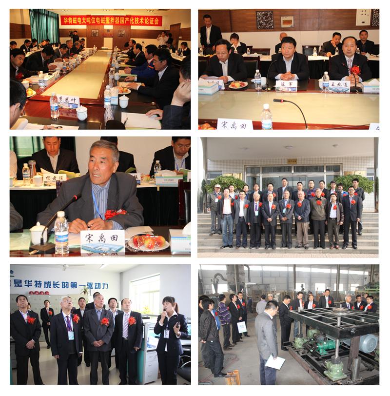 大噸位電磁攪拌器是我公司根據(jù)2009年山東省第一批技術(shù)創(chuàng)新項(xiàng)目計(jì)劃研制開發(fā)的新產(chǎn)品。為幫助企業(yè)進(jìn)一步完善產(chǎn)品質(zhì)量,為用戶提供高性價(jià)比的產(chǎn)品,2011年4月23日臨朐縣經(jīng)信局在臨朐組織召開了產(chǎn)品國(guó)產(chǎn)化技術(shù)論證會(huì),來(lái)自中國(guó)有色金屬加工協(xié)會(huì)、中國(guó)資源綜合利用協(xié)會(huì)、中科院電工研究所、中科院高能物理研究所、山東大學(xué)、濟(jì)寧學(xué)院、蘇州博能爐窯科技有限公司、中鋁山東分公司電解鋁廠、中色科技股份有限公司、河南中孚實(shí)業(yè)有限公司等十多單位的20多位專家和客戶代表參加了會(huì)議。與會(huì)專家考察了生產(chǎn)現(xiàn)場(chǎng),聽取了研制單位的技術(shù)匯報(bào),審查了有關(guān)資料,經(jīng)過(guò)質(zhì)詢討論,形成如下論證意見: