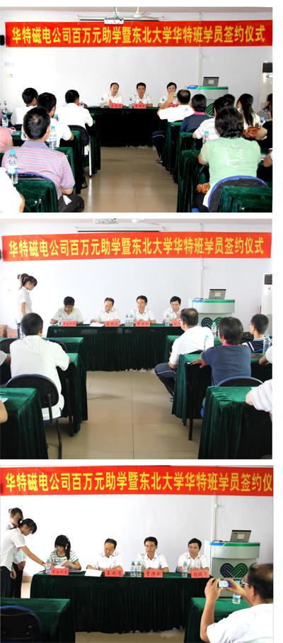 8月22日,華特公司百萬元助學(xué)暨東北大學(xué)華特班學(xué)員簽約儀式在公司電教室舉行。公司董事長兼總經(jīng)理王兆連、技術(shù)中心總經(jīng)理劉風(fēng)亮、總工程師賈洪利、人力資源部經(jīng)理王建功等出席簽約儀式,會(huì)議由技術(shù)中心總經(jīng)理劉風(fēng)亮主持,王兆連董事長作重要講話。王兆連董事長首先對公司生產(chǎn)、發(fā)展、管理及此次助學(xué)情況、東北大學(xué)悠久歷史以及專業(yè)特色作了詳細(xì)介紹,同時(shí)對廣大學(xué)員給予厚望,希望以后的學(xué)習(xí)中扎扎實(shí)實(shí),勤奮努力,學(xué)好本領(lǐng),早日成才,隨后與學(xué)員代表簽訂助學(xué)協(xié)議。協(xié)議中就公司雙方各自承擔(dān)的責(zé)任和義務(wù)進(jìn)行了約定。下午,人力資源部就企業(yè)文化、員工禮儀、團(tuán)隊(duì)協(xié)作、行為習(xí)慣的改變等內(nèi)容對東大華特班學(xué)院進(jìn)行了培訓(xùn)。下發(fā)入學(xué)通知書,各位學(xué)員返回做入學(xué)準(zhǔn)備,9月1日由公司統(tǒng)一組織共同到東北大學(xué)報(bào)到。