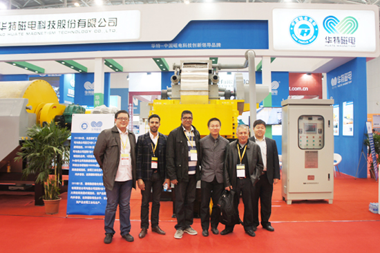 進(jìn)入N1展館,一眼便能望到藍(lán)白相間的華特磁電展區(qū),此次,華特攜1.5m立環(huán)高梯度磁選機(磁場達(dá)18000Gs)和1.8m大筒徑高效濕式預(yù)選機參展,憑借油冷卻技術(shù)及產(chǎn)品低能耗、低溫升、高場強、高壽命等顯著優(yōu)勢,先后吸引了300多家客戶,其中近期有合作項目的五十余個。