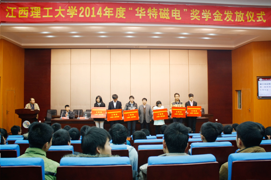 1月13日,我公司與江西理工大學(xué)“華特磁電”獎學(xué)金頒獎儀式暨報(bào)告會在江西理工大學(xué)隆重舉行。