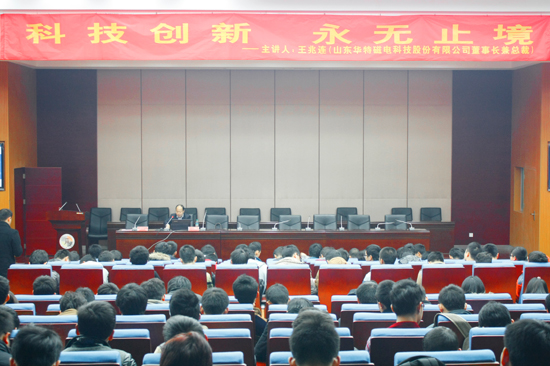 獎學(xué)金發(fā)放儀式結(jié)束后,王兆連董事長作《科技創(chuàng)新 永無止境》的專題報(bào)告,向在場的莘莘學(xué)子們分享了公司艱辛的創(chuàng)業(yè)發(fā)展史,介紹了公司的主要技術(shù)產(chǎn)品和最新的研發(fā)動態(tài)。最后,王董事長誠摯邀請優(yōu)秀的有志之士加盟華特,共同發(fā)展,實(shí)現(xiàn)人生的理想和價(jià)值。