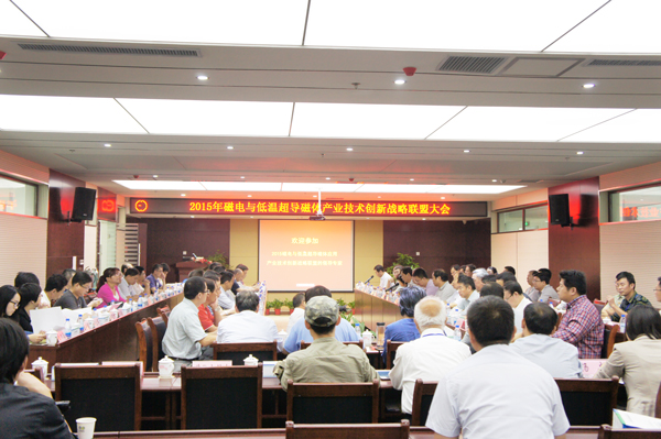 金秋送爽,丹桂飄香。9月19日,2015年中國磁電與低溫超導磁體應用產業技術創新戰略聯盟年會在中國五鎮之首東鎮沂山腳下,山東省濰坊市臨朐縣召開。來自全國各地的聯盟成員單位代表、科研院所和行業協會的領導專家,相聚一起,共商發展大計。武漢理工大學資環學院院長、墨西哥國家科學院院士宋少先教授,中國冶金礦山機械協會秘書長劉效良,中國重型機械協會洗選設備專委會秘書長呂英凡,澳大利亞中信泰富技術總監張長久教授級高工,東北大學土木資源工程學院副院長韓躍新教授,河北鋼鐵集團礦業有限公司總經理助理鄭衛民教授級高工、礦山研究設計院院長南世卿博士,中鋼集團馬鞍山礦山研究院有限公司副總工孫炳泉教授級高工、選礦所所長楊任新教授級高工,鞍鋼礦業集團科技部陳占金教授、礦業設計院總設計師陳強教授級高工,蘇州中材非金屬工業設計院于陽輝高工,中國地質調查局成都礦產綜合利用研究所研究員張裕書,中國地質科學院鄭州礦產綜合利用研究所劉磊主任,中科院高能物理研究所超導磁體工程中心副主任趙玲高工,山東科技大學化工學院副院長呂憲俊教授,華北理工大學礦業學院原院長張錦瑞教授、選礦系主任趙禮兵博士,山東華聯礦業公司副總經理亓中華, 山東興盛礦業集團秦來成高工,西部超導材料科技有限公司梁朝暉處長,山東華建鋁業集團有限公司蔣波部長,中冶北方設計院選礦所所長孟光棟教授級高工,建龍礦業集團董事長苑占永,萊蕪礦業董事長亓俊峰,唐山陸凱科技有限公司董事長李松奕,威海海王旋流器有限公司董事長黃愛秀,山東理工大學孟凡濤教授,濟寧學院李光葉博士, 山東乾舜礦冶科技股份有限公司董事長馮婕,以及來自中南大學、魯南礦業、臨礦集團、廟溝鐵礦、中關鐵礦等四十多家單位一百多名代表和山東電視臺、《中國礦業報》、《資源再生雜志》、臨朐電視臺等媒體出席聯盟大會。