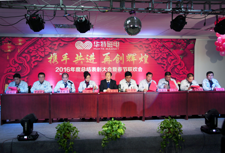 2017年元月20日,山東華特磁電科技股份有限公司2016年度總結(jié)表彰及2017年工作動員大會在公司招待中心二樓隆重召開,出席大會的公司領(lǐng)導(dǎo)有:公司董事長兼總裁王兆連,常務(wù)副總裁劉風(fēng)亮,公司董事、副總裁劉梅,副總裁王建波,公司董事、工會主席王學(xué)軍,總裁助理魏黎明、劉西軍,財務(wù)總監(jiān)、董秘孟昭剛,公司監(jiān)事會主席、總工程師賈洪利及濰坊新力超導(dǎo)磁電科技有限公司常務(wù)副總李培勇等全體員工500多人參加了會議。