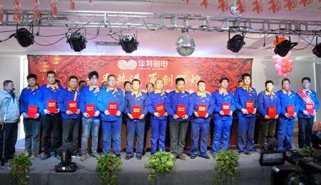 由公司董事長王兆連、常務(wù)副總裁劉風(fēng)亮、生產(chǎn)中心總經(jīng)理劉西軍為2016年度獲得華特工匠、高級技師、技師的25位員工分別頒發(fā)榮譽證書。